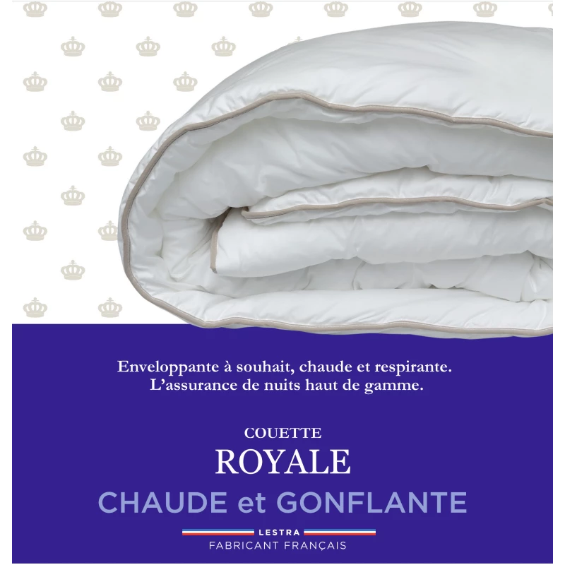 Compagnie du Blanc vous présente la couette hiver ROYALE en version chaude/toutes saisons 380g/m2. Article de haute qualité avec une enveloppe en percale 100% coton. Légère en poids et extra gonflante, cette couette chaude vous apportera tout le confort nécessaire et une sensation de bien être assurée.