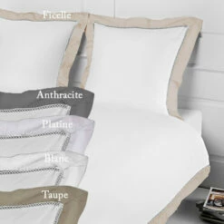 La Compagnie du Blanc vous propose de coordonner votre parure imprimée avec draps housse, taies d’oreillers, draps plat et taie de traversin en percale de coton unie 80 fils/cm2.