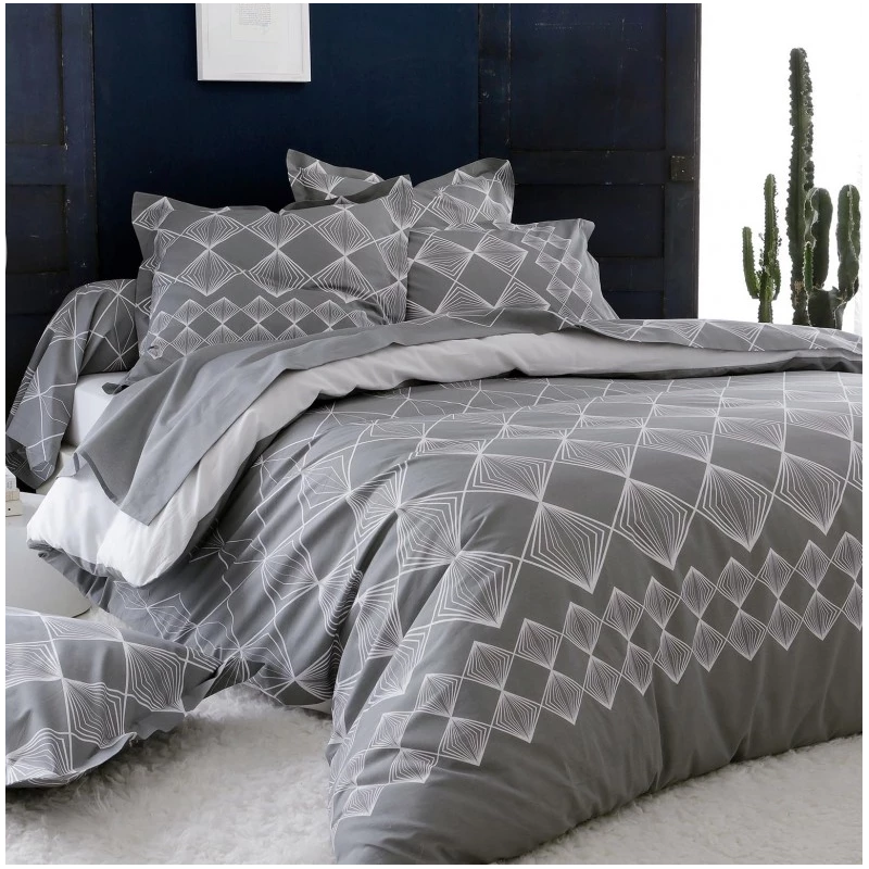 Parure Housse de Couette FOREVER GRIS 100% Coton 57 fils/cm2. Tissage serré.
