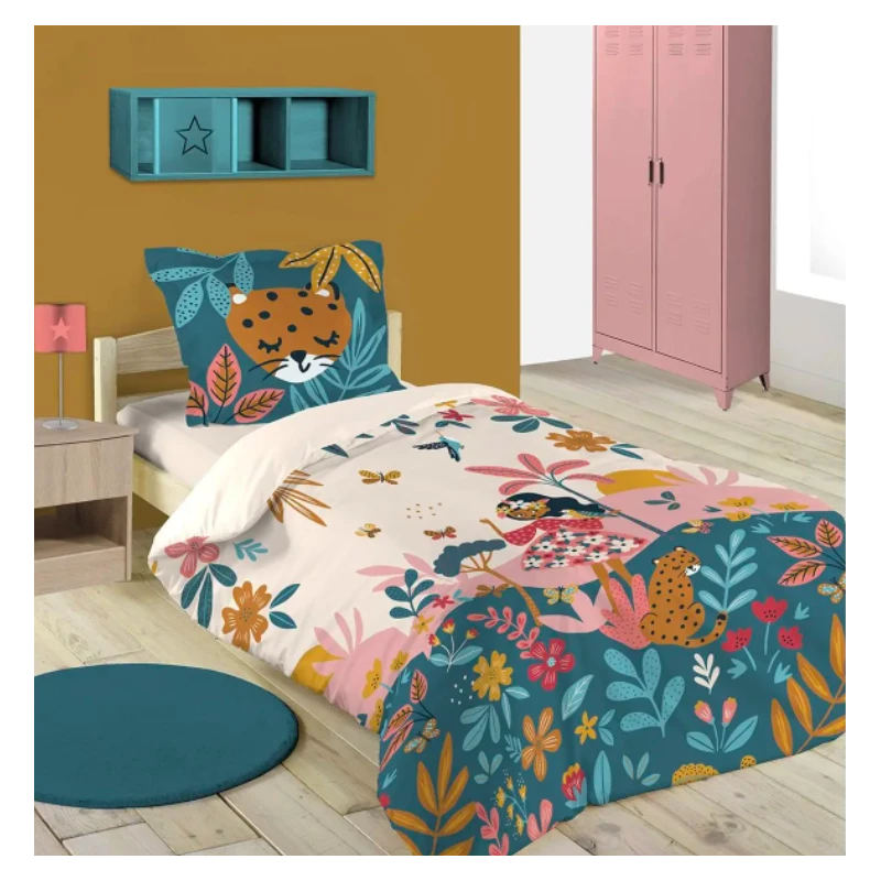 Cette parure comporte la housse de couette et la taie taille 65×65 cm.